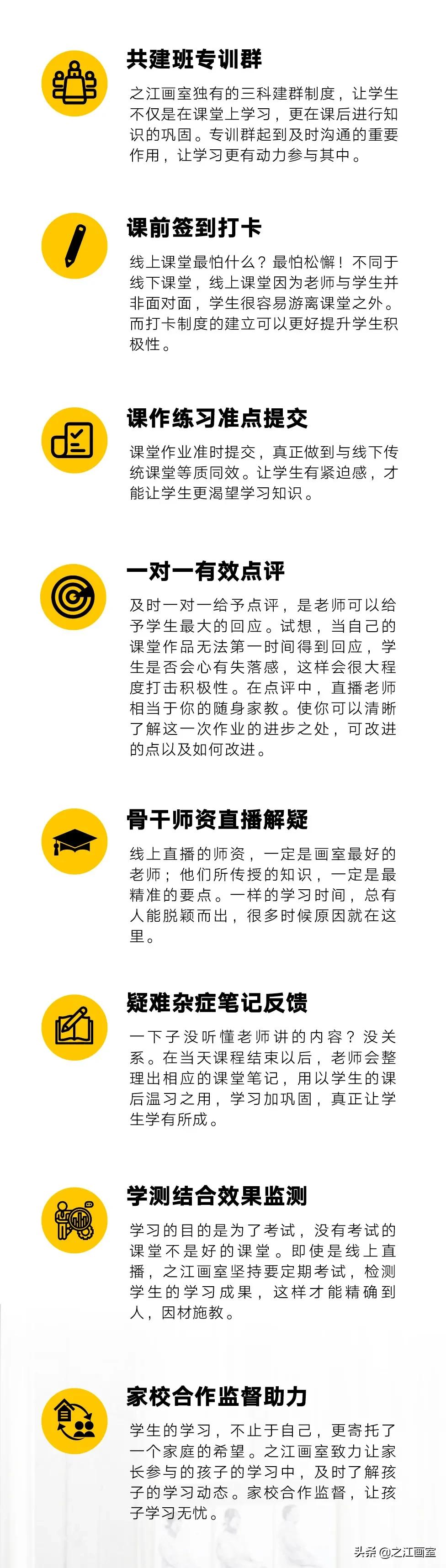 作为寒假期间的为数不多可供学生上课的窗口,之江画室致力从学生集训衔接的第一需求出发,安排画室顶尖师资直播教学。不仅是为了以最优的状态向外展示,更是为了让学生得到最好的课程教授。在这样的师资教导下,学生能以更加轻松、高效的状态学习,更好赢在起跑线。